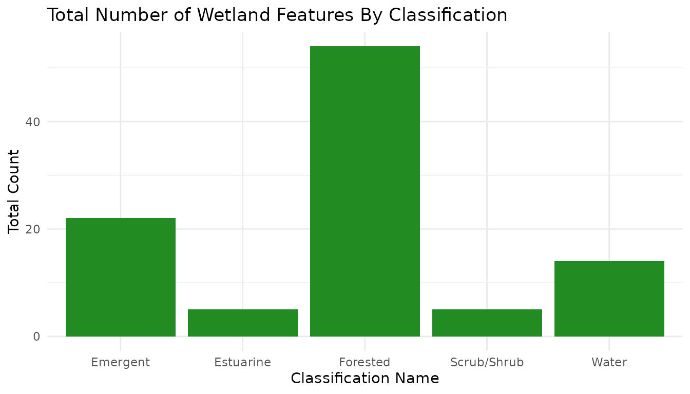 labs(title = "Total Number of Wetland Features By Classification", x = "Classification Name", y = "Total Count") +